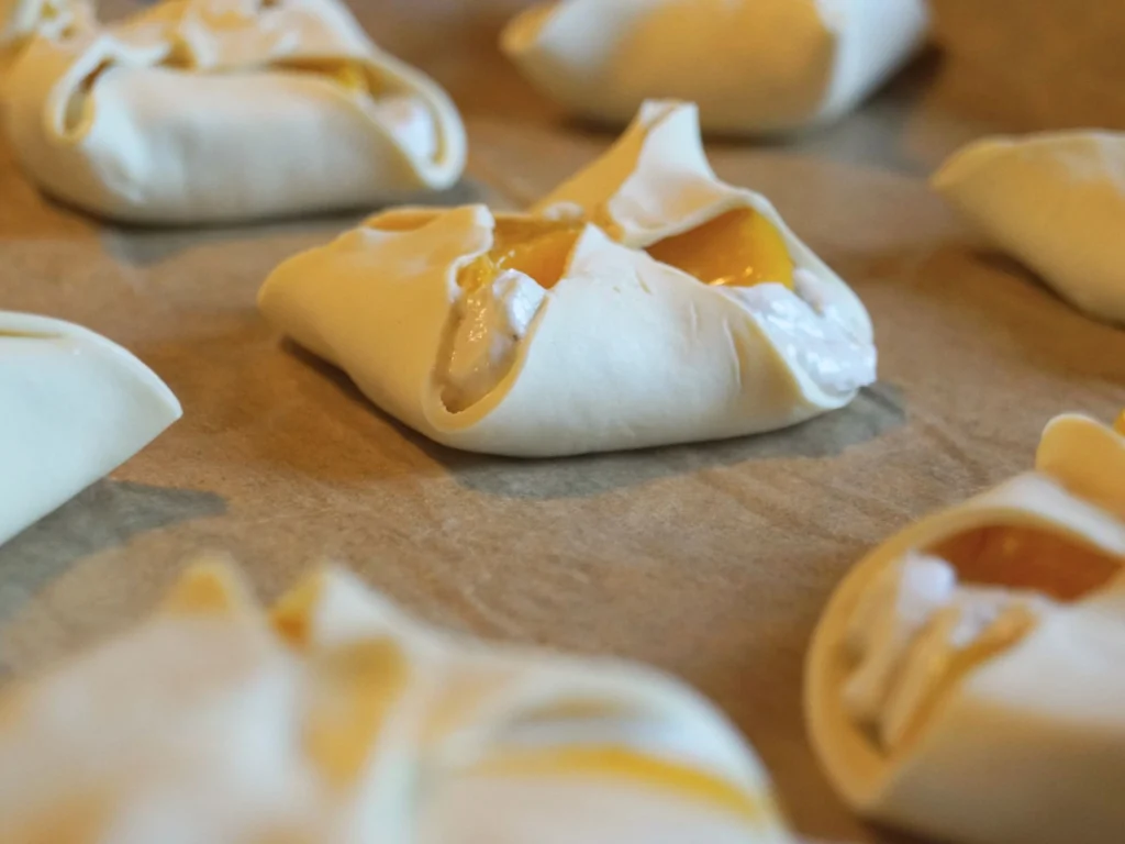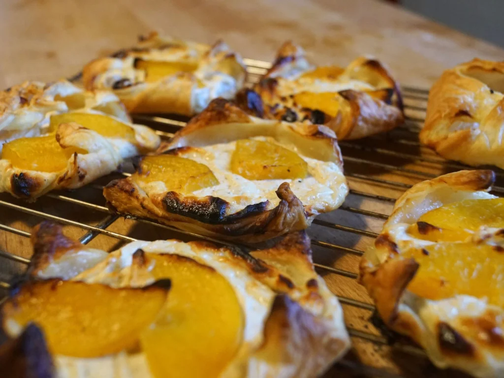 Blätterteigplunder mit Vanillequark und Pfirsisch